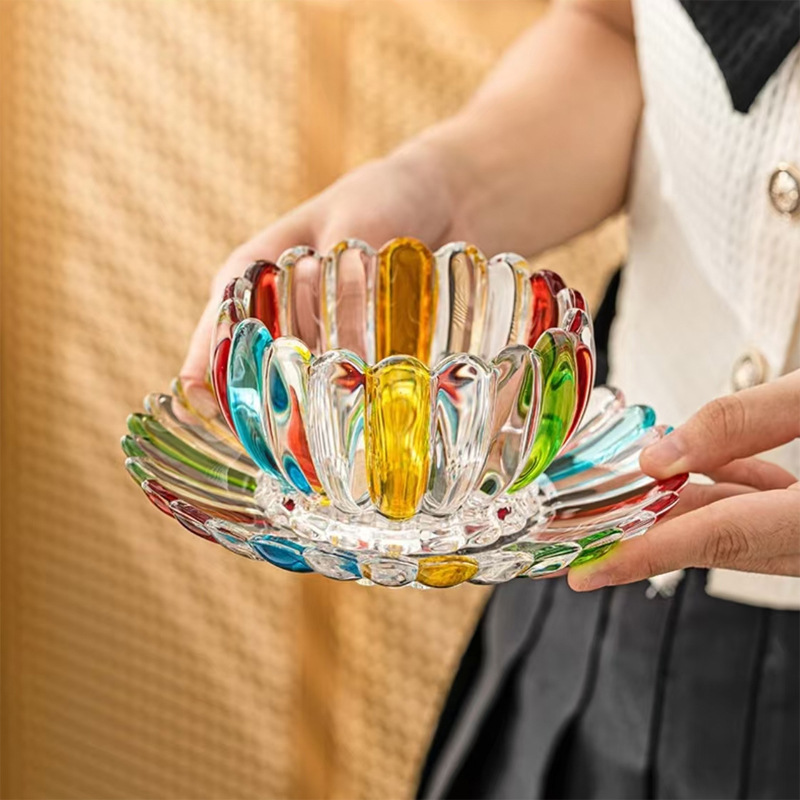 Ime izdelka: desertni krožnik iz pisane črtaste steklene sklede