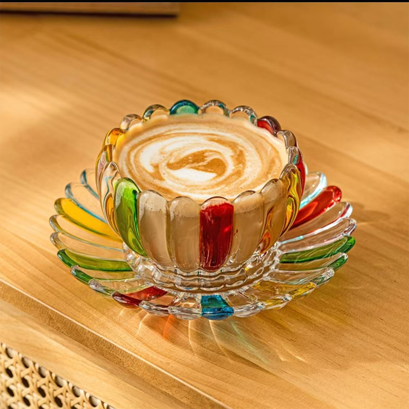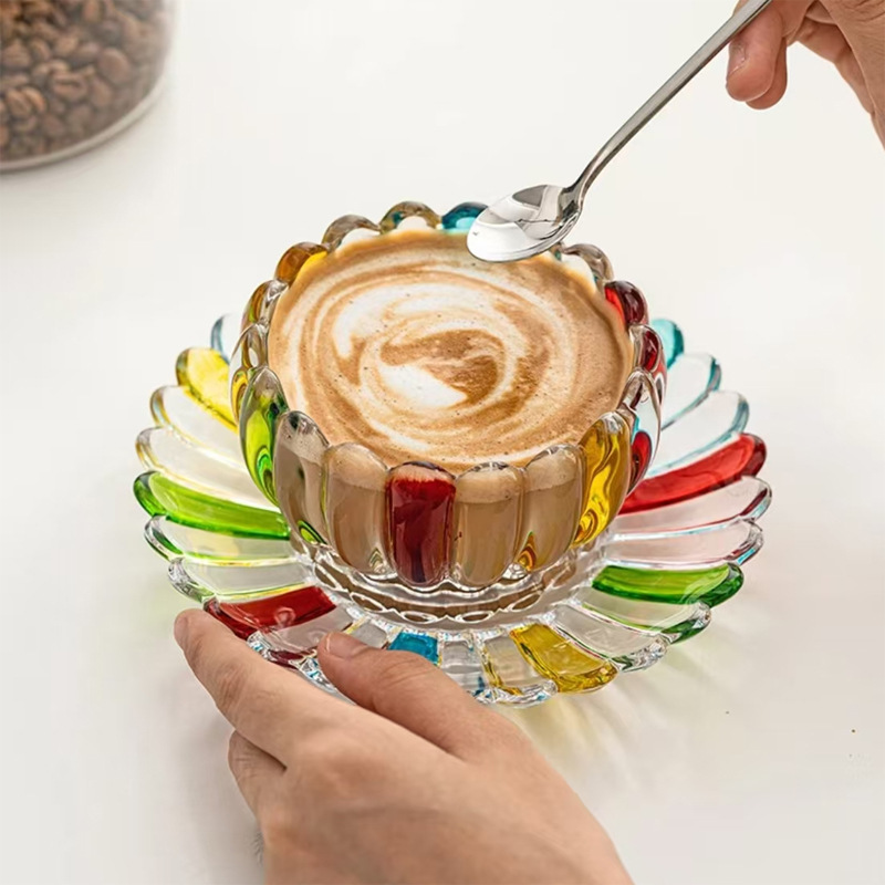 Tridimenzionalni dizajn cvetlične teksture. Tako skodelica kot krožnik imata jasno definirano tridimenzionalno konveksno teksturo cvetnih listov, medtem ko široko ustje izboljša splošno estetiko in zagotavlja nedrsečo površino.