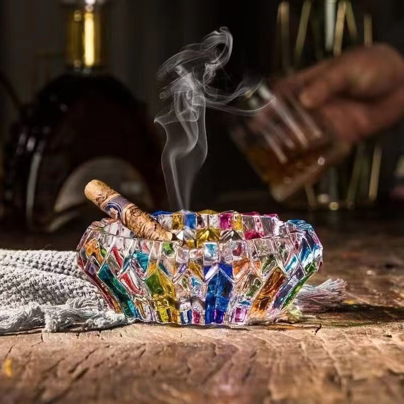 3.Sreativno kristalno stekleno pepelnik, narejen iz rezanja in poliranja skozi več procesov, vsaka podrobnost poudarja osebnost izdelka in prikazuje plemenito kakovost.